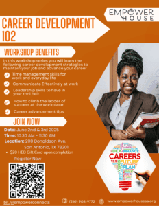 In this workshop you will learn the following career development strategies to maintain your job and advance your career: 1) Time management skills for work and everyday life. 2)Communicate Effectively at work. 3) Leadership skills to have in your tool belt. 4) How to climb the ladder of success at the workplace. 5) Career advancement tips.