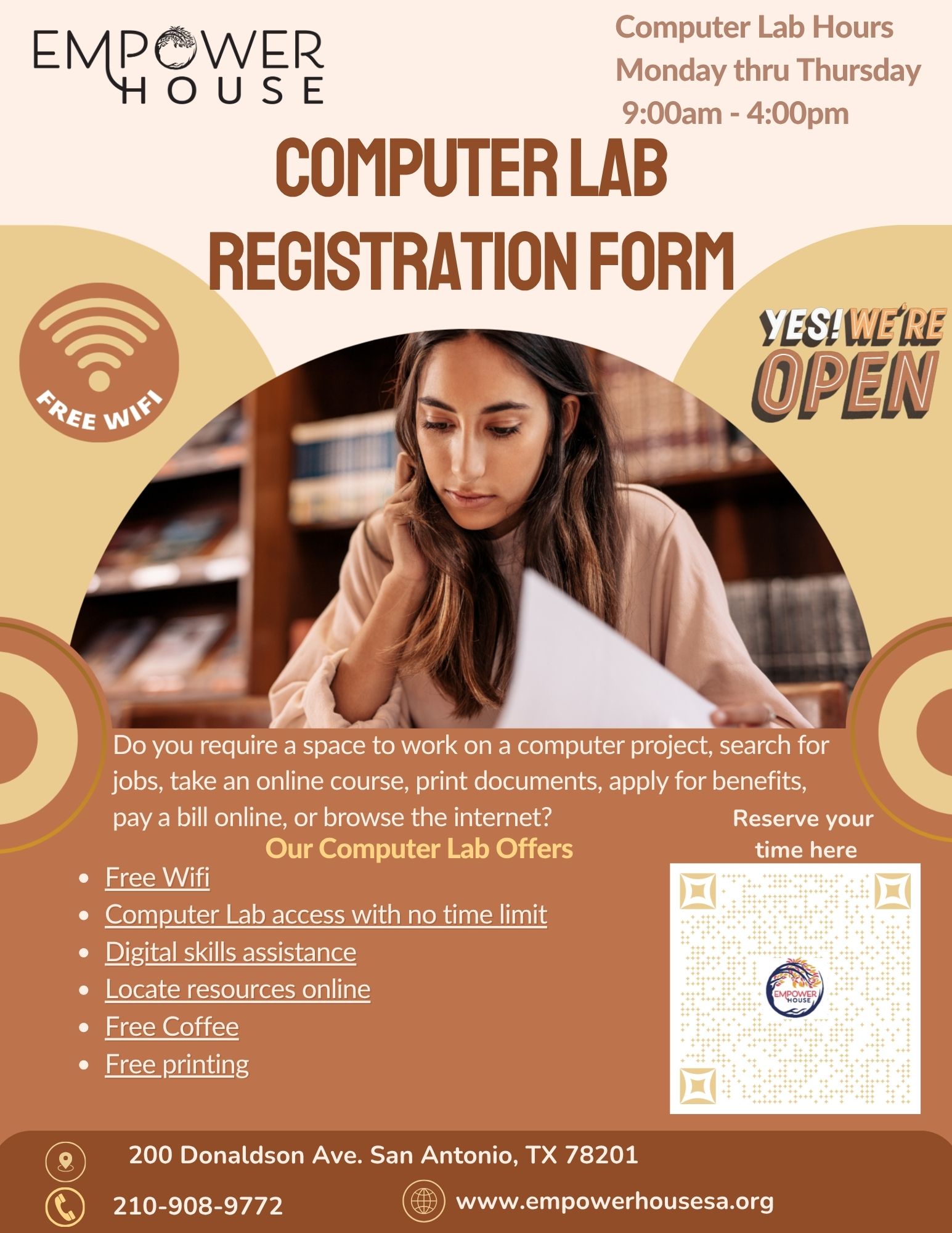 Do you require a space to work on a computer project, search for jobs, take an online course, print documents, apply for benefits, pay a bill online, or browse the internet?