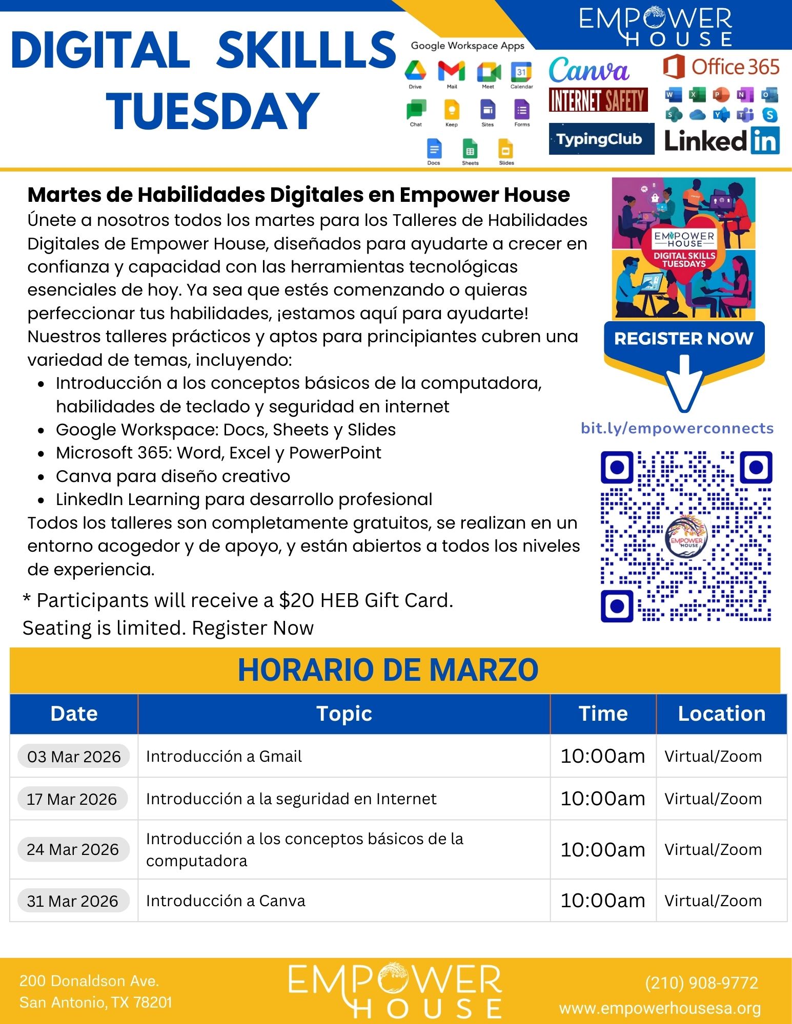 Digital Skills Tuesday en Español Introducción a Gmail - March 3. 2026 - 10am (Virtual) Introducción a la seguridad en Internet - March 17, 2026 - 10am (Virtual) Introducción a […]