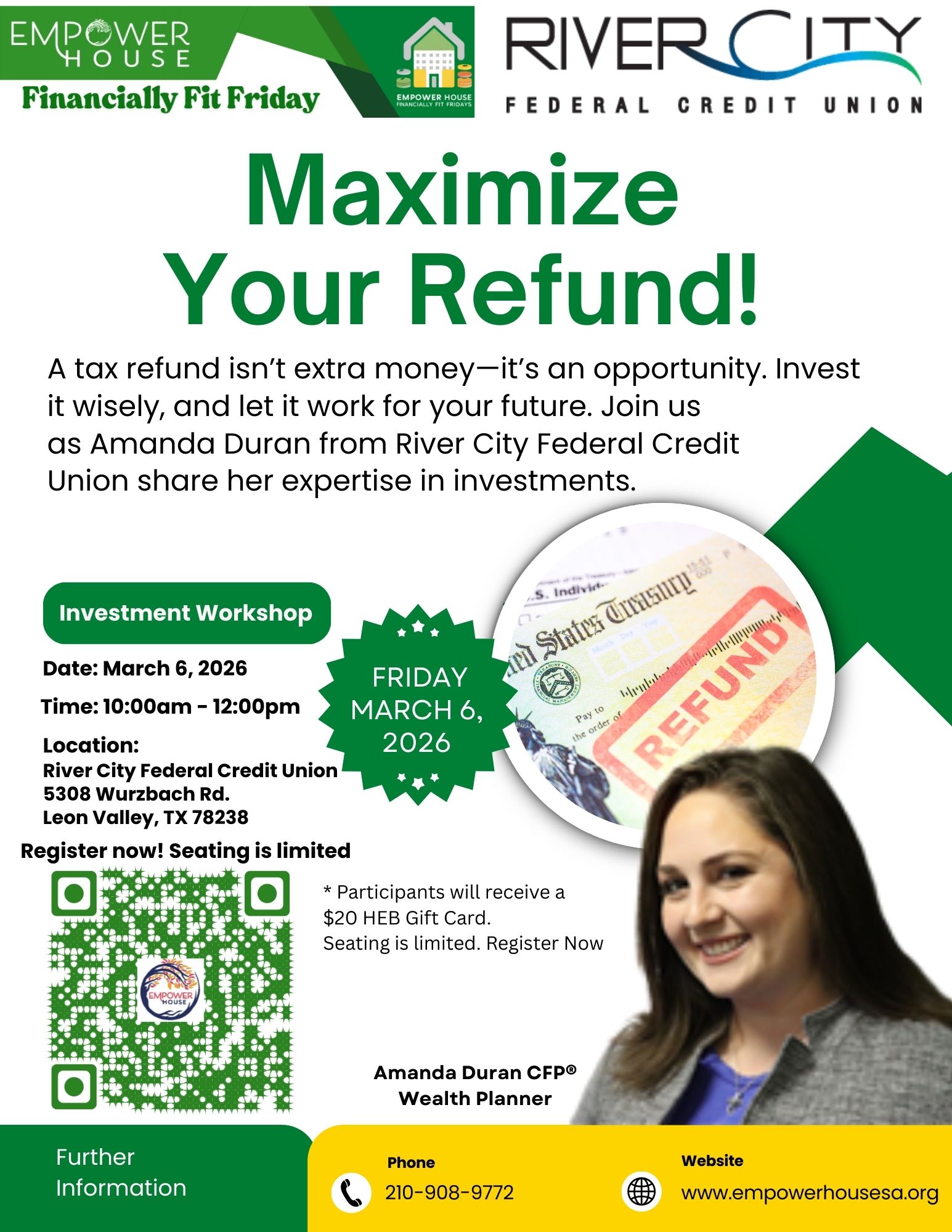 Virtual Through ZOOMVirtual Schedule 2/13/2026 - 50/30/20 Budget Rule / 6:30pm - 7:30pm 2/27/2026 - Overcoming Financial Barriers / 6:30pm - 7:30pm Register Here: https://www.jotform.com/app/240814212349148/251552802967160