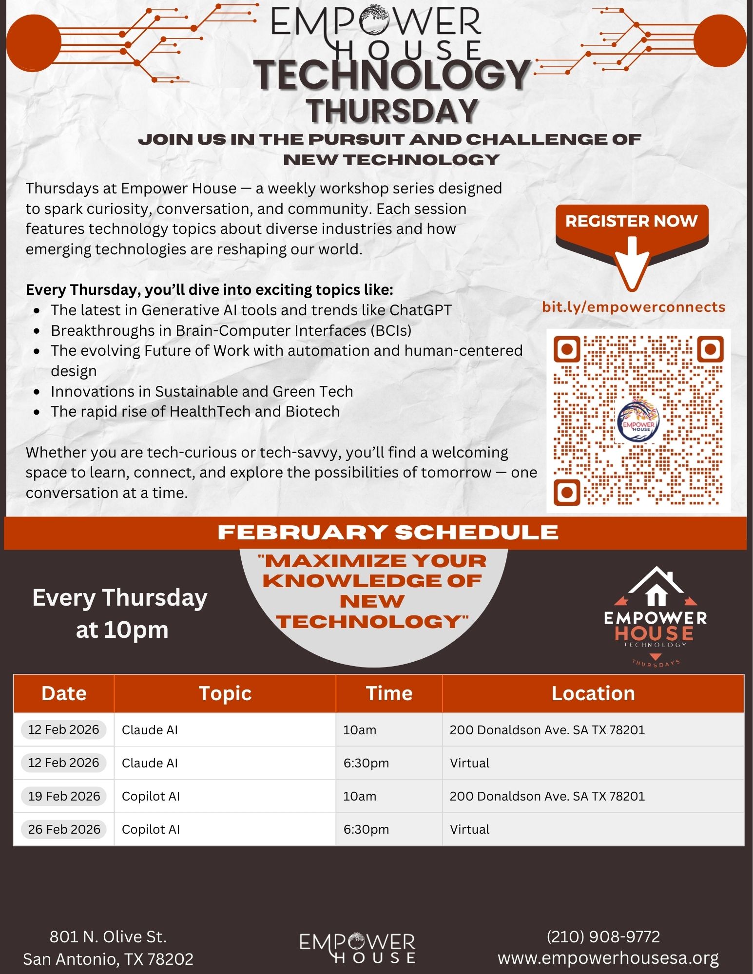 200 Donaldson Ave, San Antonio, TX 78201 200 Donaldson Ave., San Antonio, TX, United StatesPasos inteligentes hacia el éxito empresarial - Esta serie de 6 sesiones presenta conferencias introductorias sobre aplicaciones, sitios web y otras herramientas tecnológicas que pueden ayudar a modernizar los pequeños negocios. Fechas: Primera sesión- 26 de Enero, 2026 Segunda sesión- 2 de Febrero, 2026 Tercera sesión sesión- 9 de Febrero, 2026 Cuarta sesión sesión- 16 de Febrero, […]